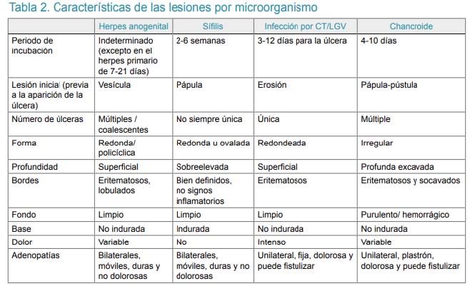 El número de úlceras y sus características, nos permiten orientar el diagnóstico clínico. Las guías clínicas de SEIMC incluyen una tabla que puede ayudar a orientar el diagnóstico .